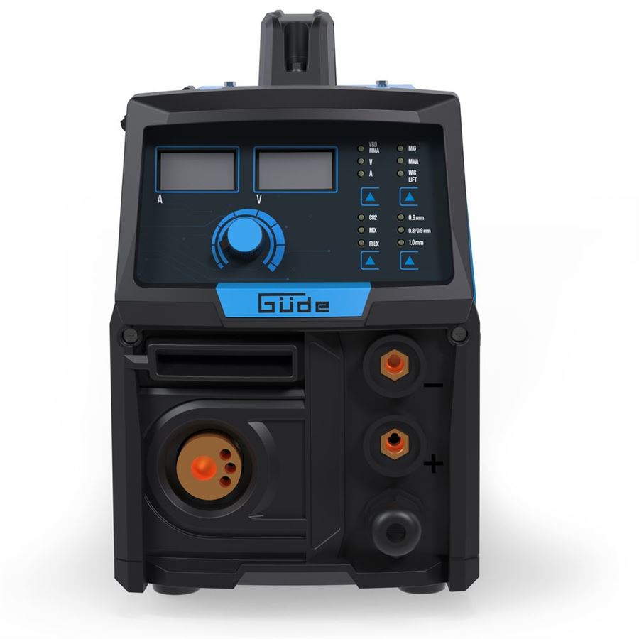 Multifunkční invertorová svářečka Güde, určená pro obloukové svařování metodami MMA, FCAW, MIG/MAG a WIG. Technologie invertoru s podporou IGBT pro extrémně rychlé spínací procesy a přesnou regulaci svařovacího proudu, která zjednodušuje svařování tenčích plechů a výrazně omezuje tvorbu svarových kuliček. Osvědčené přídavné funkce, jako jsou Anti-Stick, Hot Start a Arc Force, zajišťují maximální komfort svařování i za ztížených podmínek. Nový, inovativní a synergicky řízený posuv drátu se automaticky nastaví na vhodnou rychlost po zvolení svařovacího procesu, tloušťky drátu a tloušťky svaru. Tyto doplňkové funkce umožňují zejména začínajícím a nezkušeným svářečům okamžitě dosáhnout dobrých výsledků svařování.