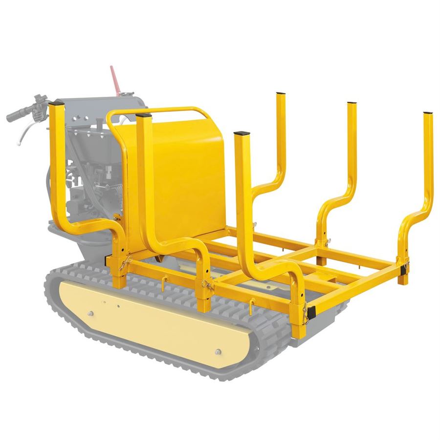 Nástavec GÜDE pro GRD 500/R představuje ideální dopravní prostředek pro přepravu dřeva. Ať už se jedná o dlouhé kmeny stromů, palivové dřevo nebo objemné kusy dřeva. Stabilní konstrukce zajišťuje, že náklad zůstane vždy bezpečně upevněn a rovnoměrné rozložen, což výrazně usnadňuje manévrování a jízdu s těžkým nákladem dřeva. Díky kónické konstrukci, která je dole úzká a nahoře široká, lze optimálně využít dostupný prostor. Objemné kusy lze nakládat prostorově úsporným způsobem, aniž by to bylo na úkor stability. Nástavec na dřevo praktickým rozšířením sklápěče nejen pro přepravu palivového dřeva, ale také pro použití v lesním hospodářství nebo na stavbách. Montáž je rychlá a nekomplikovaná, pásový sklápěč lze během chvilky přestavět na přepravu dřeva. Jakmile je práce hotová, lze stojan na dřevo stejně snadno demontovat a prostorově úsporně uskladnit.
