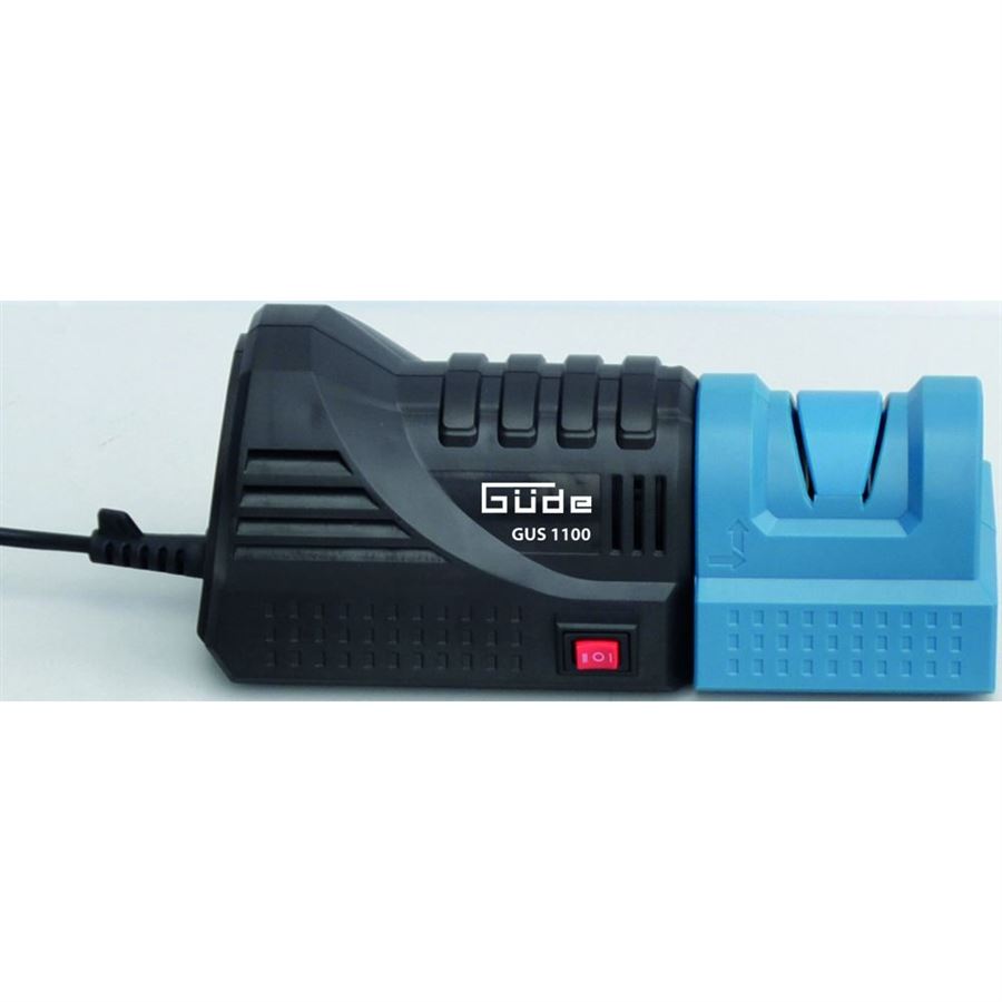 Víceúčelová ostřička GÜDE, určená k ostření nožů, nůžek, broušení břitů dlát, sekáčů, hoblovacích nožů nebo ostření špiček spirálových vrtáků.