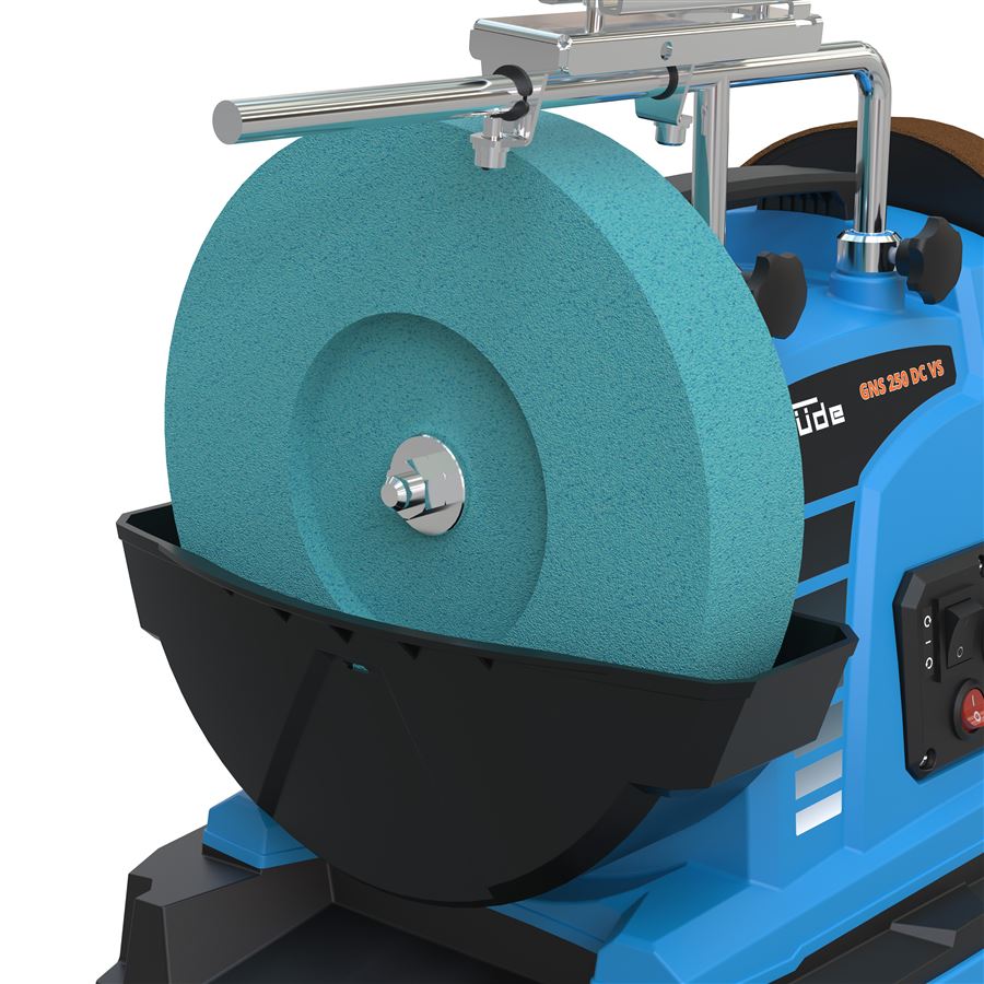 Bruska GÜDE na mokré broušení, vysoký točivý moment a mimořádně hladký chod. Díky regulaci otáček Vario-Speed a dvěma směrům chodu lze kontrolovaně a šetrně brousit jakýkoli nástroj od nožů a seker až po hoblíky. Nádržka na vodu s ochranou proti přetečení zaručuje vždy optimální chlazení.