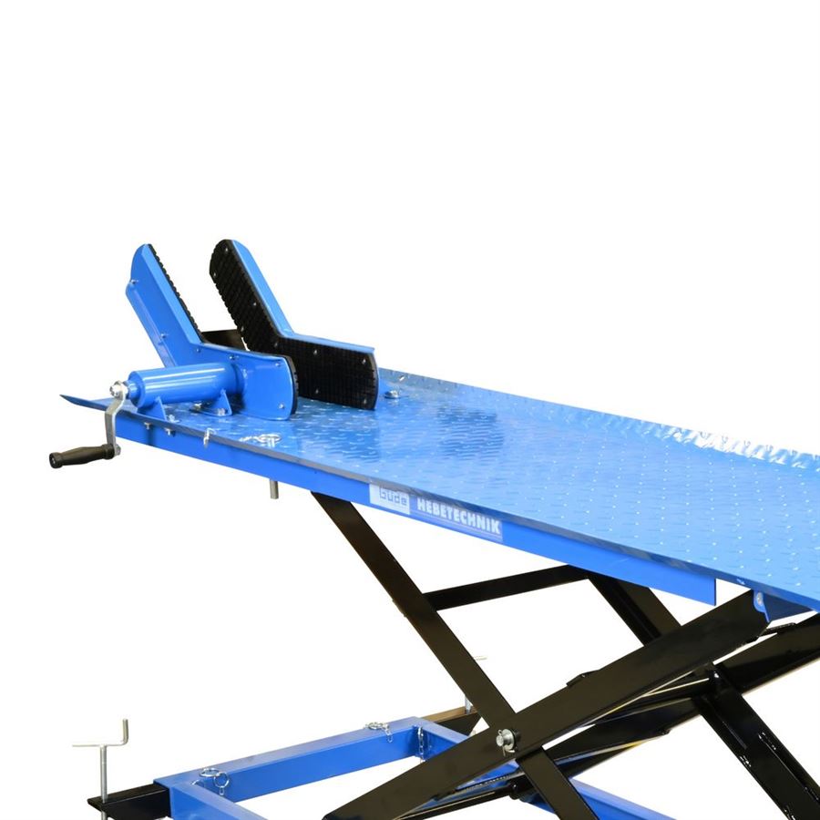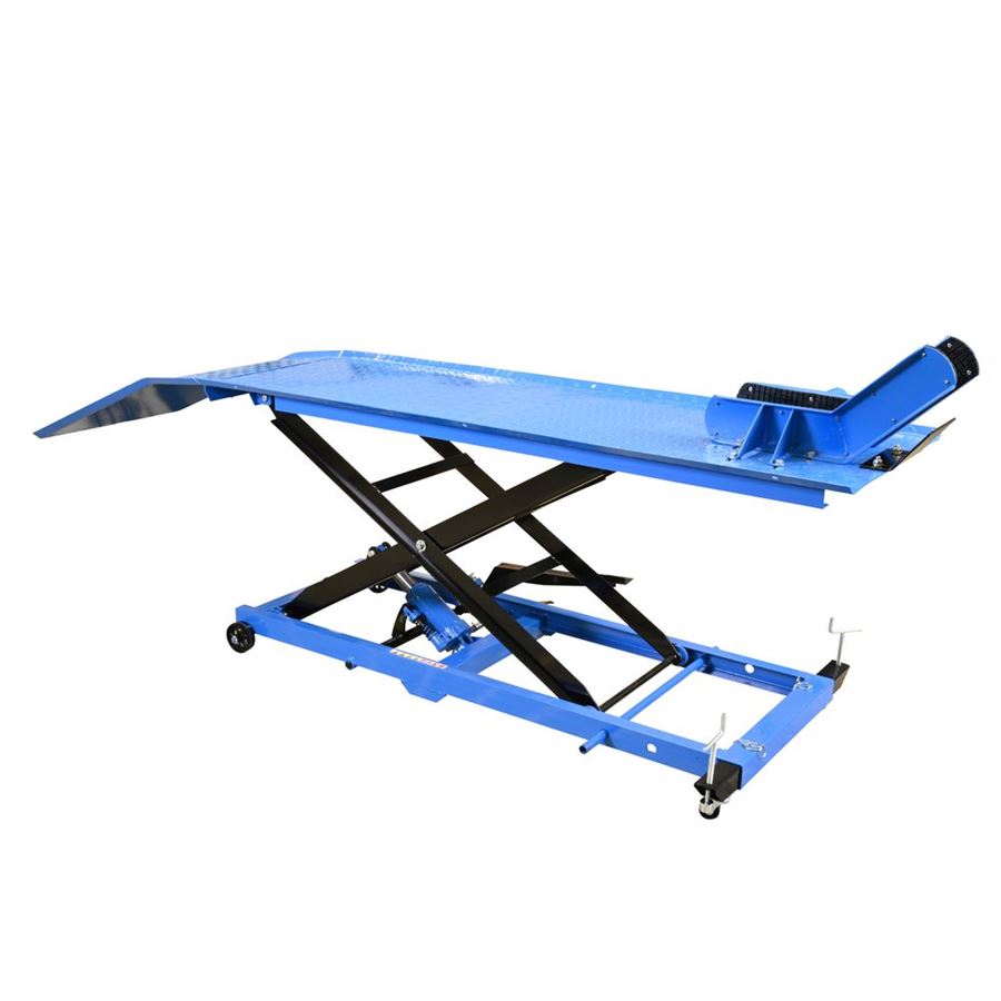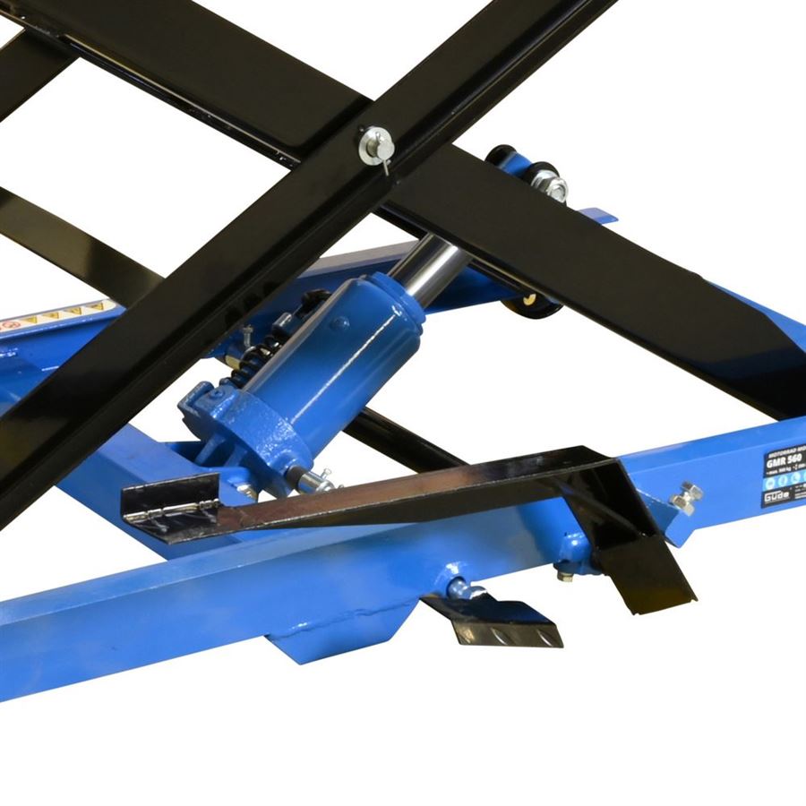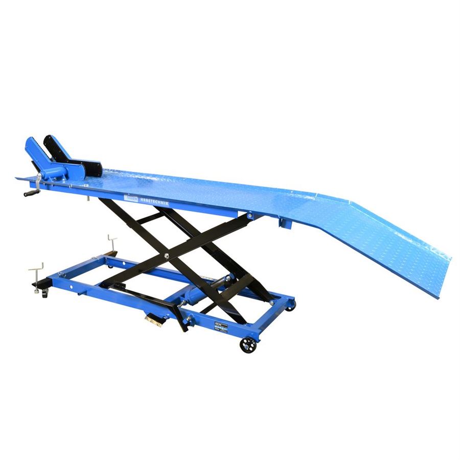Hydraulická zvedací plošina, určená ke zdvihání motocyklů v prostředí garáží, domácích/servisních dílen apod. (-> maximální nosnost: 560 kg).